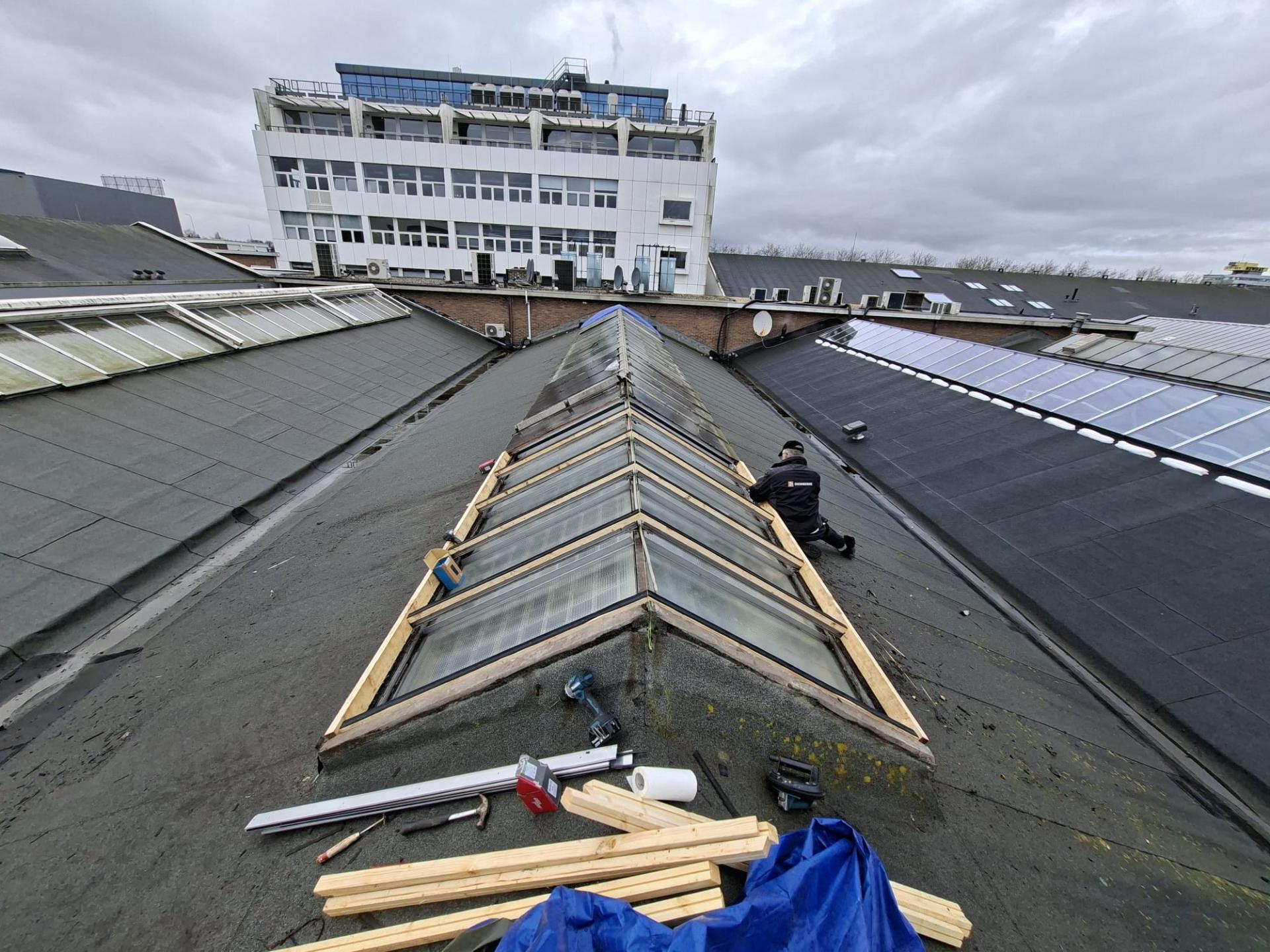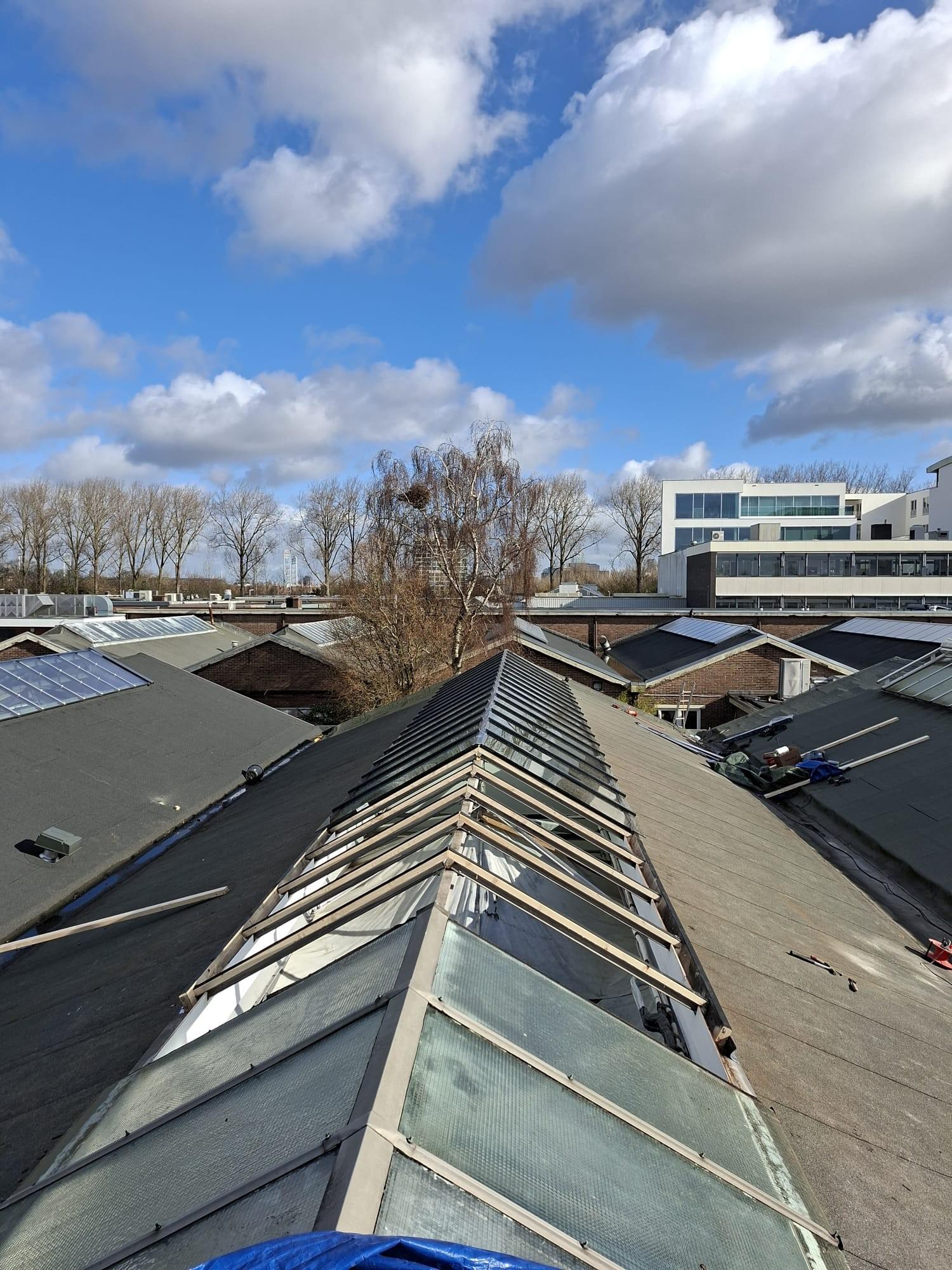Voor deze opdrachtgever hebben we het glas in een grote lichtstraat op het dak volledig vervangen. In totaal zijn 52 ruiten vernieuwd. De bestaande beglazing is zorgvuldig verwijderd, waarna de lichtstraat opnieuw is opgebouwd en voorzien van nieuwe ruiten en strakke afwerking.