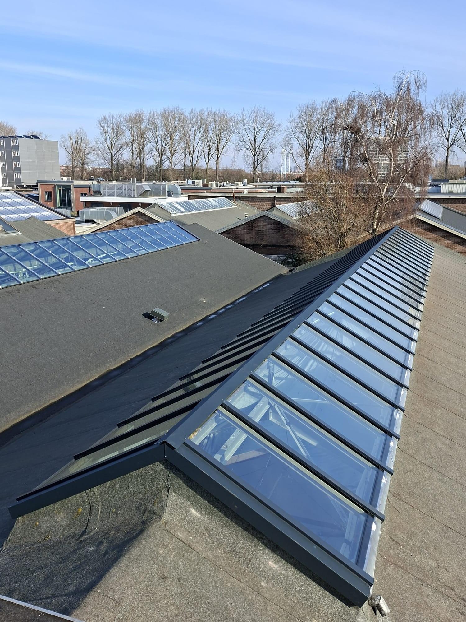 Het resultaat is een vernieuwde lichtstraat met helder glas en een strakke uitstraling, waardoor er weer volop daglicht naar binnen valt en de constructie klaar is voor de toekomst.